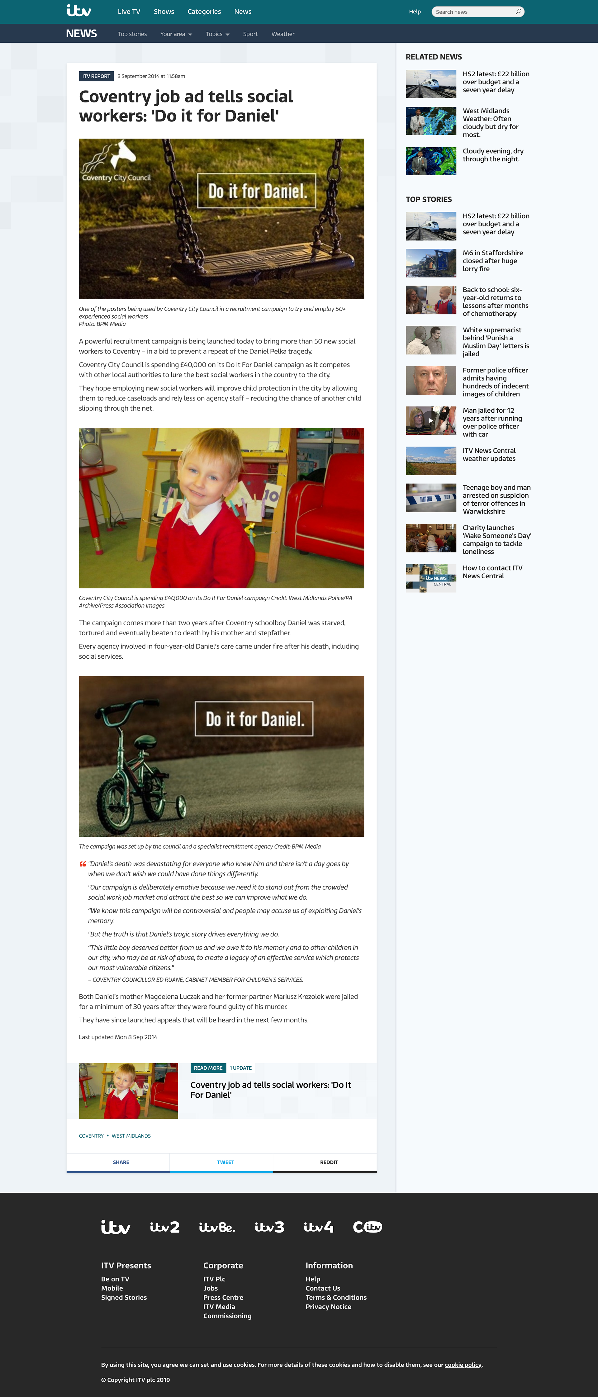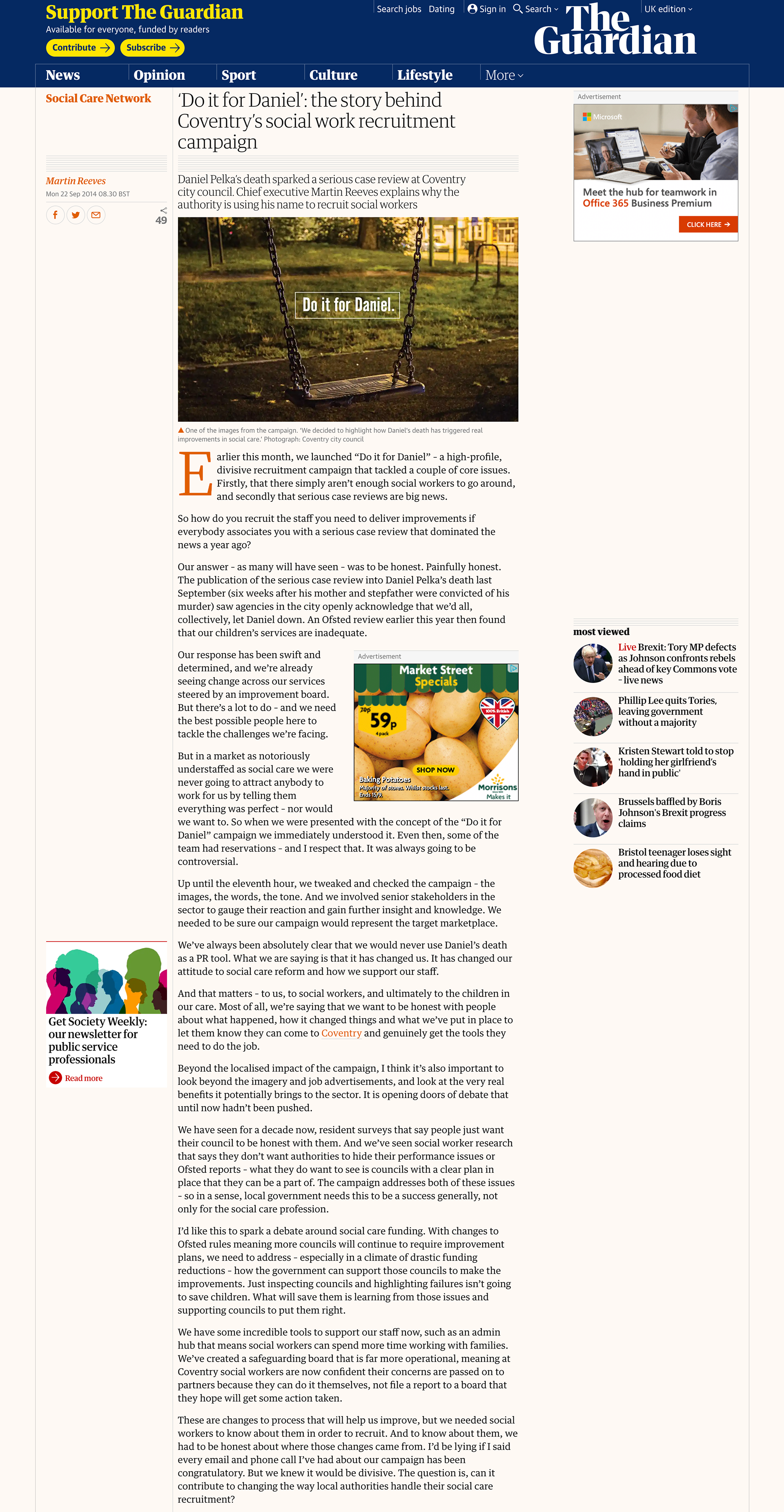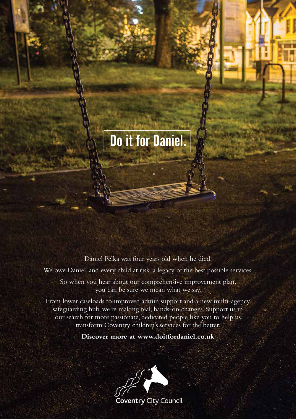 Monday 8th September 2014 was launched “Do it for Daniel” – a high-profile, divisive recruitment campaign which tackled a couple of core issues – firstly that there simply aren’t enough social workers to go around, and secondly that serious case reviews are big news. So how do you recruit the staff you need to deliver much needed improvements if everybody associates you with a high profile serious case review that dominated the news just a year ago? The answer – as many will have seen – was to be honest. And painfully honest.